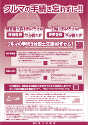 引越しした人が訪れる機会の多いことから、自動車の変更登録・移転登録の手続を訴求するために作成したリーフレットを地方公共団体、警察署・運転免許センター等の行政機関において配布しています。